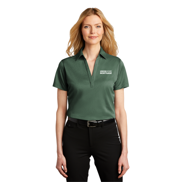 Introducing our luxurious Port Authority® Women's Heathered Silk Touch™ Performance Polo. Designed for elegant uniforming options, this polo features PosiCharge® technology for a snag-resistant and moisture-wicking experience. Its self-fabric collar, tag-free label, and V-neck placket complete the sophisticated look. Keep polished and ready for anything in this 100% polyester polo.