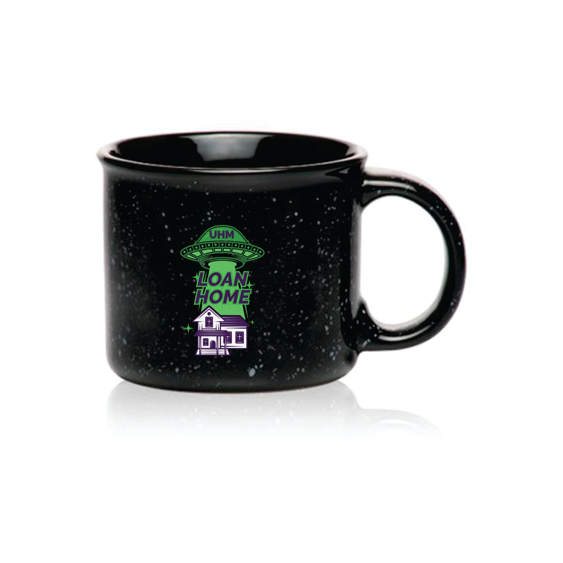 This 13 oz. ceramic coffee mug is great for drinking hot cocoa by the campfire! A very useful promotional item, this mug features a speckled design, flared lip and a comfortable thick handle. Perfect for trade shows, gift shops and lodges, this mug holds well and is ideal for everyday use with your favorite coffee or tea. Drink your favorite beverage from this out of this world mug!