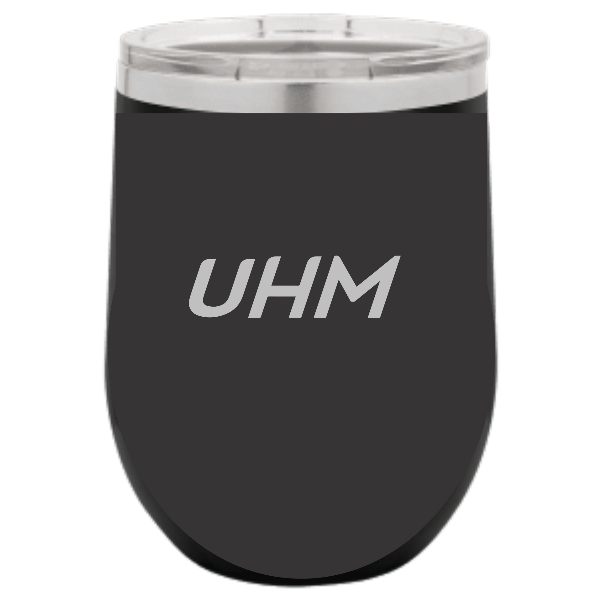This 12 oz Wine Tumbler Laser Engraved with the UHM logo makes a perfect gift for those that are closing on a new home. They will remember the role that UHM played in their perfect forever home and think to refer you to others who are looking for the same outcome. Comes in black with Laser Engraving. Requires Hand Washing.
