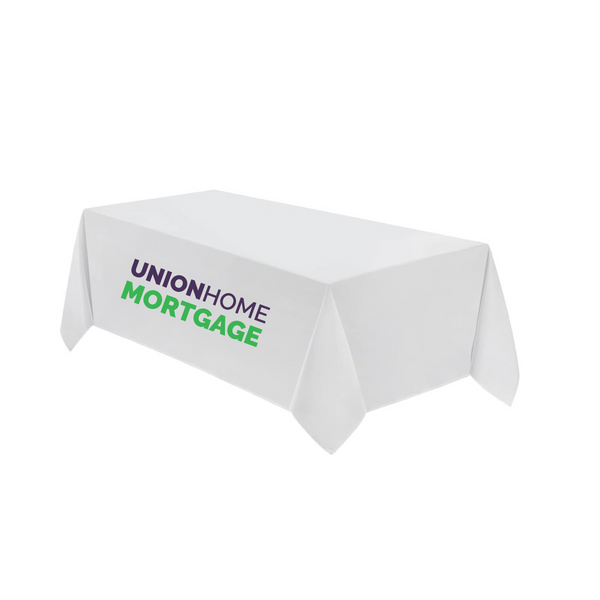 Show who you are with this logoed 8 ft tablecloth. 100% polyester and machine washable and reusable.
