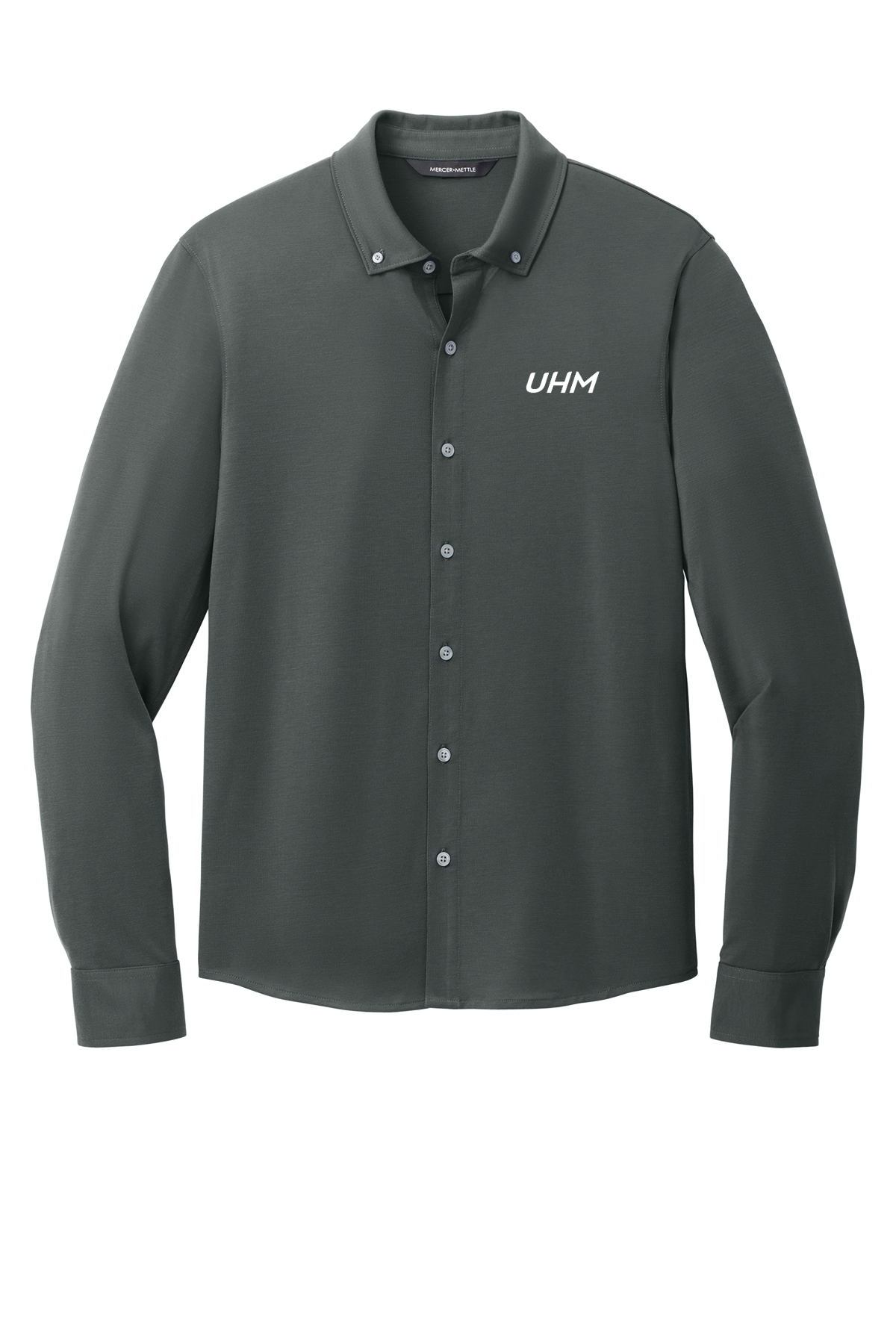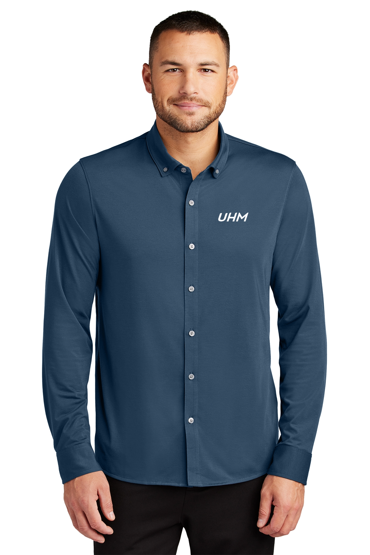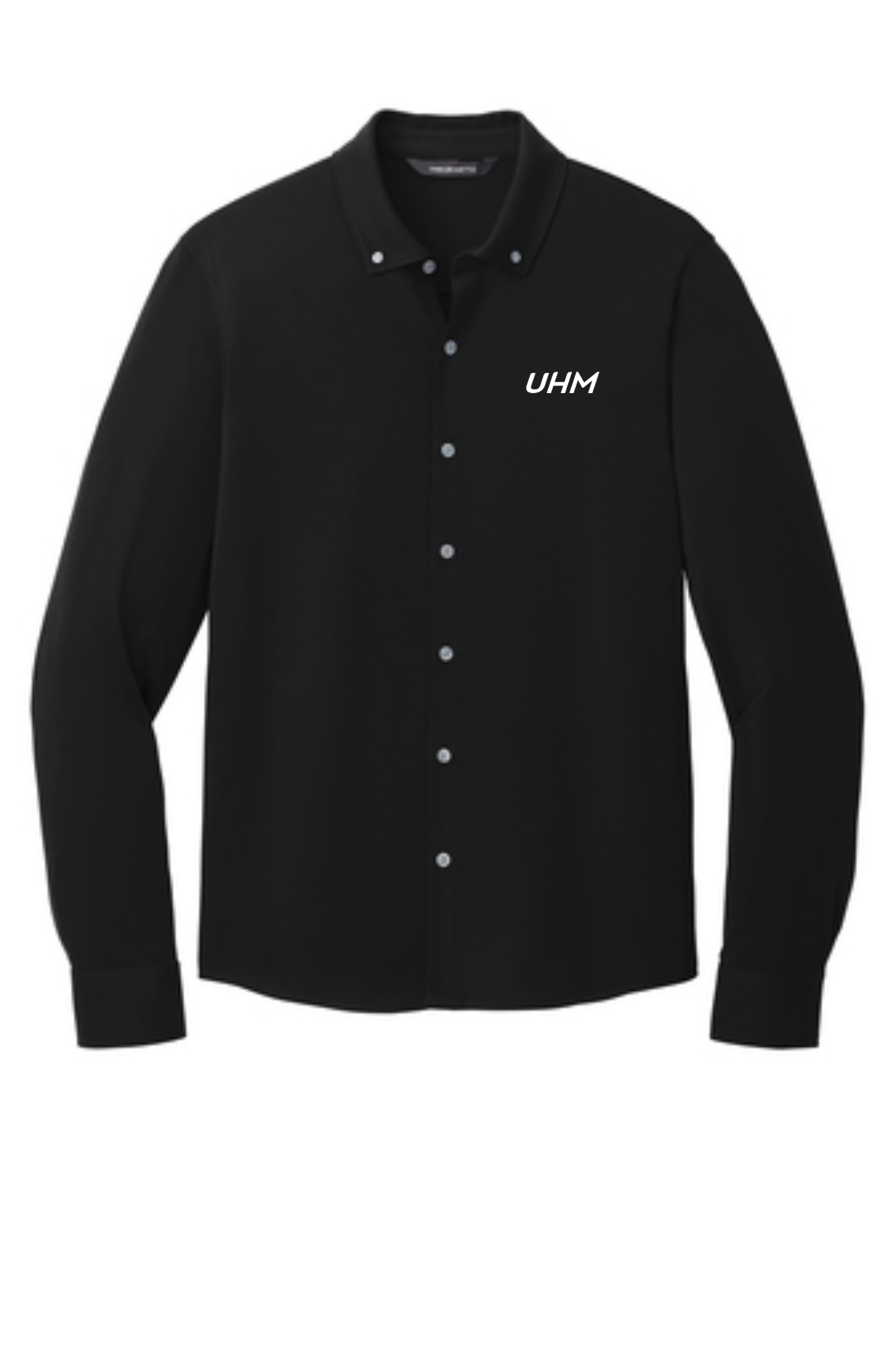 All the traditional components of a classic dress shirt combined with the comfortable drape of soft jersey fabric in a modern, moisture-wicking hybrid silhouette. A versatile choice for the office featuring all the comfort of a favorite tee.Fabric+Weight 5-ounce, 92/8 poly/spandex jersey Features+Benefits Button-down collar with collar stand Rimmed buttons with a satin finish Adjustable mitered cuffs Curved shirt tail hem